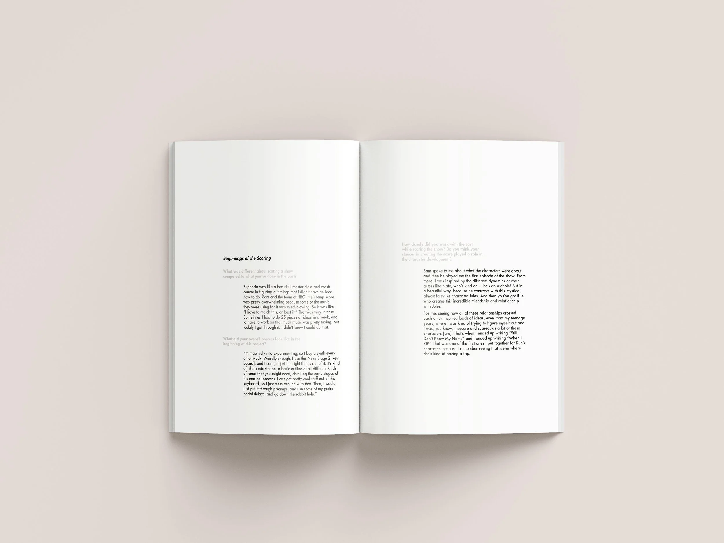 The objective of this project is to explain the behind the scenes process of the music production within the show, while elaborating on the significance of the show. Through this publication, the goal is to influence the audience to watch Euphoria and listen to the score.